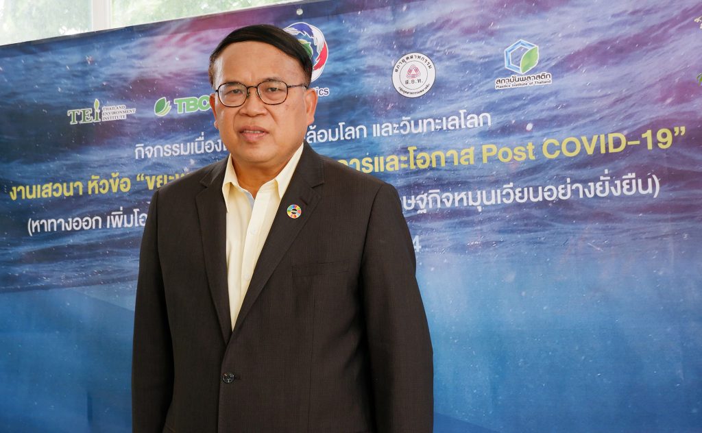 เมื่อเร็วๆ นี้ โครงการความร่วมมือภาครัฐ ภาคธุรกิจ ภาคประชาสังคม เพื่อจัดการพลาสติก และขยะอย่างยั่งยืน (Public Private Partnership for Sustainable Plastic and Waste Management : PPP Plastics) ที่ก่อตั้งขึ้นโดยองค์กรธุรกิจเพื่อการพัฒนาอย่างยั่งยืน (TBCSD) ร่วมกับกลุ่มอุตสาหกรรมพลาสติก สภาอุตสาหกรรมแห่งประเทศไทย พร้อมกับองค์กรภาคีเครือข่าย ได้จัดกิจกรรมเนื่องในวันสิ่งแวดล้อมโลกและวันทะเลโลก ภายใต้งานเสวนาในหัวข้อ  “ขยะพลาสติก : การจัดการและโอกาส Post COVID-19” (หาทางออก เพิ่มโอกาส สร้างรูปแบบที่สมดุล มุ่งสู่เศรษฐกิจหมุนเวียนอย่างยั่งยืน) ผ่านระบบออนไลน์ โดยมี ดร.วิจารย์ สิมาฉายา ผู้อำนวยการสถาบันสิ่งแวดล้อมไทย และเลขาธิการองค์กรธุรกิจเพื่อการพัฒนาอย่างยั่งยืน และประธานโครงการความร่วมมือภาครัฐ ภาคธุรกิจ ภาคประชาสังคม เพื่อจัดการพลาสติก และขยะอย่างยั่งยืน (PPP Plastics) เป็นประธาน พร้อมด้วยผู้บริหารจากหน่วยงานภาครัฐและภาคเอกชน ได้แก่ นายอรรถพล เจริญชันษา อธิบดีกรมควบคุมมลพิษ, นายวีระ ขวัญเลิศจิตต์ ผู้อำนวยการสถาบันพลาสติก, ดร.ภาณุวัฒน์ อ่อนเทศ ผู้อำนวยการส่วนบริการจัดการมูลฝอย สำนักงานจัดการมูลฝอยและสิ่งปฏิกูล สำนักสิ่งแวดล้อม กรุงเทพมหานคร, นายฉัตรชัย เลื่อนผลเจริญชัย ประธานบริหาร กลุ่มบริษัท ดาว ประเทศไทย, นายศักดิ์ชัย ปฏิภาณปรีชาวุฒิ Vice President-Polyolefins and Vinyl, Chemicals Business ธุรกิจเคมิคอลส์ เอสซีจี, ดร.ชญาน์ จันทวสุ ผู้ช่วยกรรมการผู้จัดการใหญ่ สายงานบริหารความยั่งยืนและภาพลักษณ์องค์กร บริษัท พีทีที โกลบอล เคมิคอล จำกัด (มหาชน) และ นายนภดล ศิวะบุตร ผู้อำนวยการบริหาร ฝ่ายองค์กรสัมพันธ์ บริษัท เนสท์เล่ (ไทย) จำกัด ร่วมนำเสนอข้อมูลและแลกเปลี่ยนความคิดเห็นในมิติต่าง ๆ เพื่อแก้ไขปัญหาขยะและขยะพลาสติก ร่วมหาทางออกการบริหารจัดการขยะพลาสติก เพื่อสร้างรูปแบบที่สมดุลอันมุ่งไปสู่เศรษฐกิจหมุนเวียนอย่างยั่งยืน